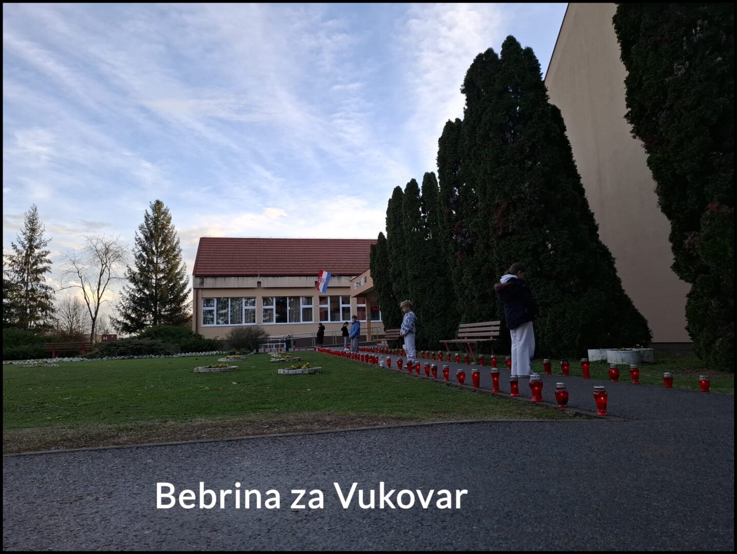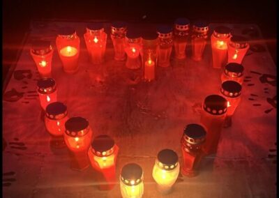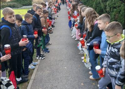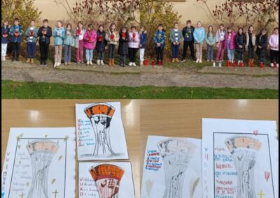 Učenici i djelatnici su se okupili ispred škole gdje su zapalili lampione u znak zahvalnosti i sjećanja. Crveni plamenovi lampiona postavljeni duž školskog prilaza simbolizirali su svjetlost koja vodi sjećanje na vukovarske žrtve. Učenici i djelatnici zajedno su se pomolili za sve stradale. Molitva nas je podsjetila na snagu zajedništva, solidarnosti i ljubavi prema domovini.