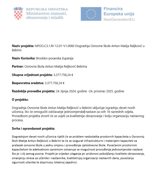 Općina Bebrina će, kao i prethodnih godina, osigurati bilježnice za sve učenike – u količini dostatnoj za cijelu školsku godinu. Bilježnice će učenike dočekati na školskim klupama prvog dana nastave.