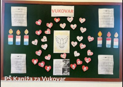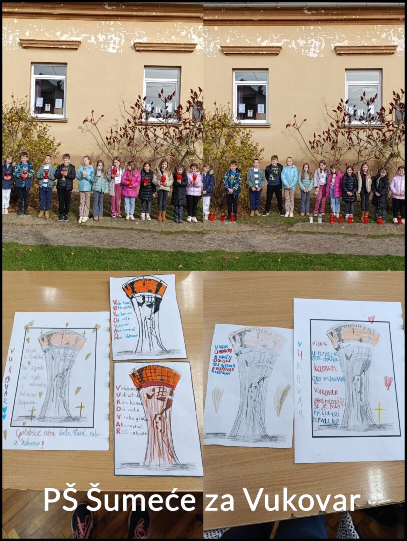 U petak, 15.11. učenici i djelatnici naše škole obilježili su nadolazeći Dan sjećanja na žrtve Domovinskog rata i Dan sjećanja na žrtvu Vukovara i Škabrnje, prisjećajući se žrtve tog grada-heroja i svih koji su dali svoje živote za slobodu Hrvatske.